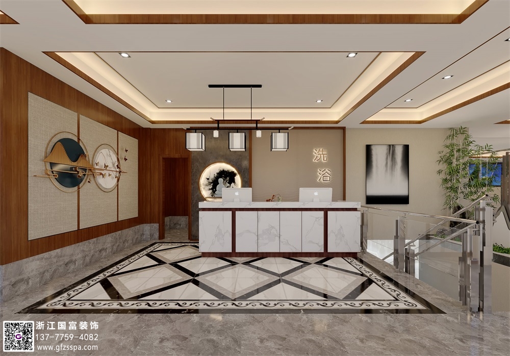 現(xiàn)代中式洗浴中心裝修設(shè)計(jì)案例效果圖